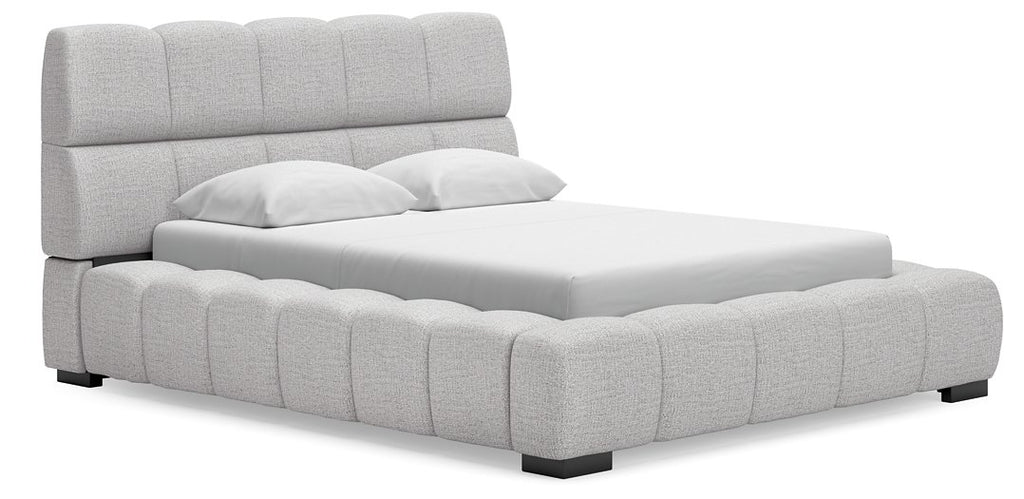 A divine merger of casual and contemporary design, this king upholstered bed is the upgrade you've been dreaming of. Plush, deep pillowed tufting creates an impressive silhouette that's just as comfortable as it is stylish. And the textured light gray Next-Gen Nuvella™ performance fabric is soft and easy to clean. Now there's a bed with staying power.
