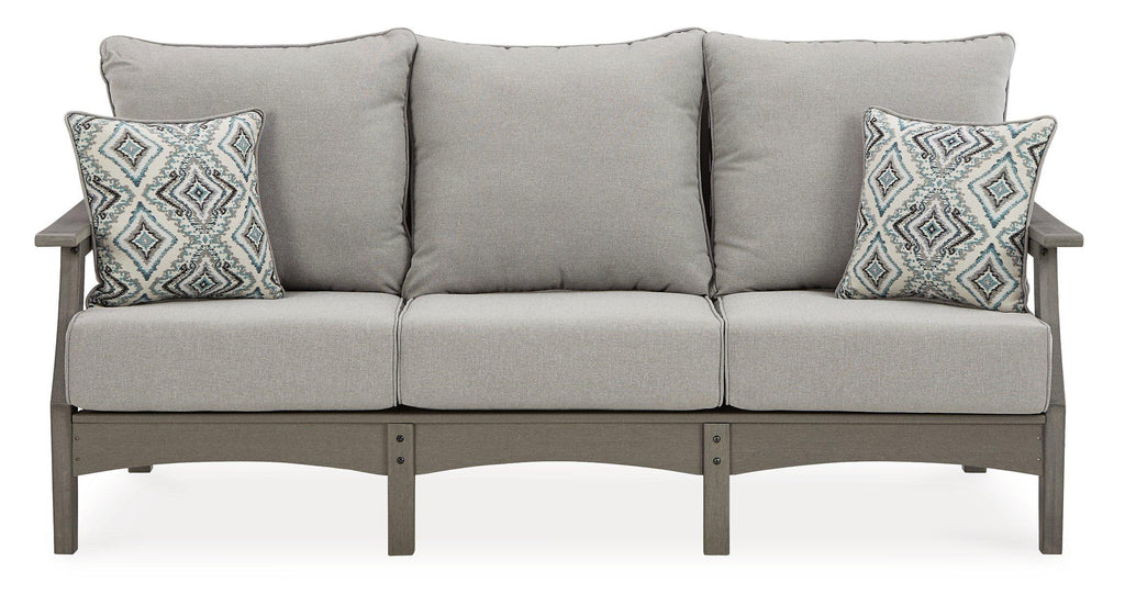 It’s the dawn of a new day for gray. Embrace the style trend with this outdoor set. Each piece is crafted of HDPE material, combining the exceptional durability and weather resistance you need with the ‚Äúwood look‚Äù you love. The coffee table and comfortably cushioned seats take alfresco living to a whole new level. A slatted table top infuses a plank-style, farmhouse-inspired touch and naturally sheds rainwater. Rest assured, the thick cushions on the sofa and loveseat are wrapped in Nuvella® high-performance fabric that’s fade-resistant, stain-resistant and a breeze to keep clean.
